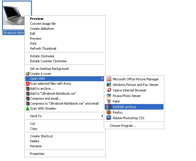 3. Pindahkan file yang ingin disembunyikan ke dalam folder yang baru dibuat di Drive D tadi, dan letakkan file gambar di tempat yang sama. beri nama gambar "Ultrabook-Notebook" Contohnya bisa dilihat dibawah ini.