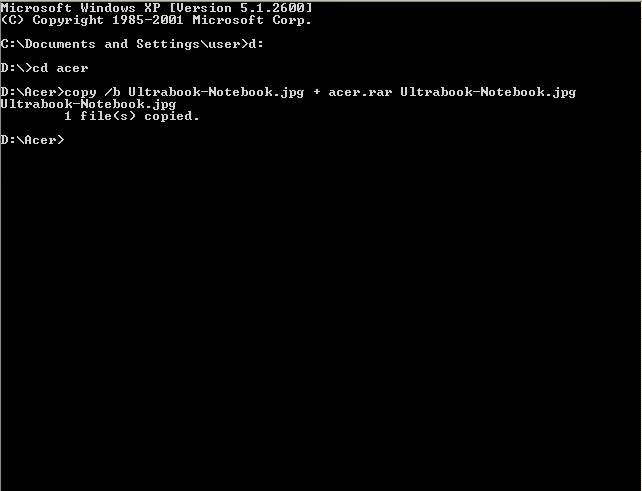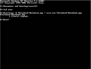 8. Ketik copy /b Ultrabook-Notebook.jpg + acer.rar Ultrabook-Notebook.jpg dan tekan Enter.